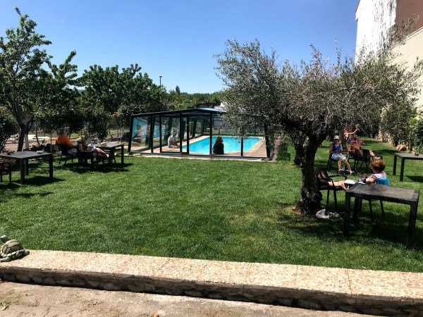 We made it into town around 2:30 pm.   Amazing! When we found a hostel, we were so surprised because it had a swimming pool! Yes, a swimming pool! It also had a beautiful grassy area to sit and hang out.