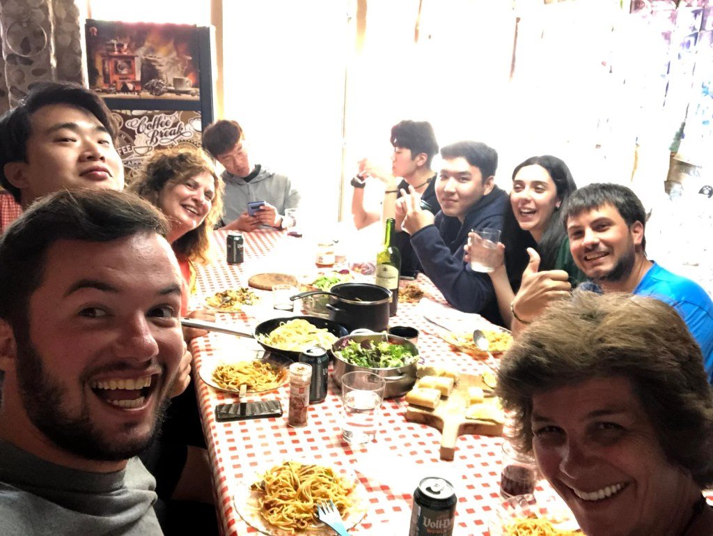 We ate a little later than usual due to the kitchen being small and everything was being used. Marcia had to get in there and be ready as soon as something was free to use. We finally got the pot and she was able to make us a pasta dish, salad and bread. It was really nice.