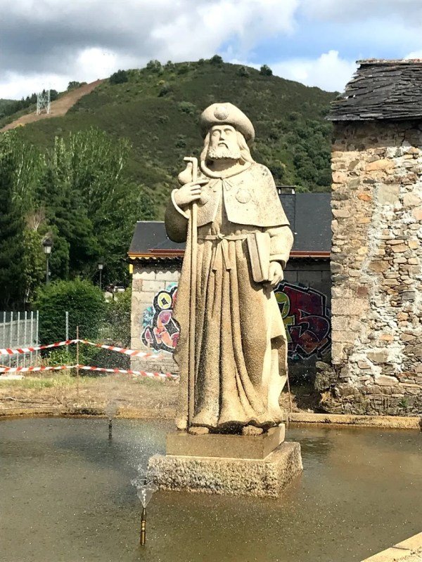 Long day with the downhill into Molinaseca. We are getting stronger in body, spirit, and mind. Today we passed the Iron Cross. I left my stone along with my friend Maggies. I had been carrying Maggies and praying for her intentions along the way. So thankful for the letters my friends from Church have written me. Each day, I open one and read it. Usually crying, but they give me strength. Then I discard as to not carry the extra weight.