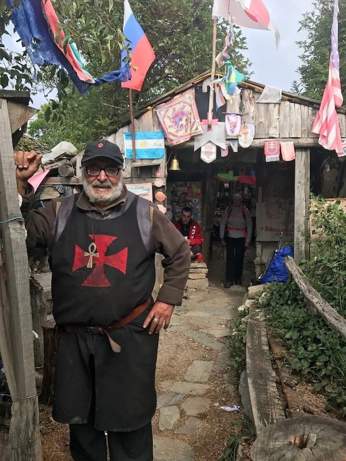 This village with a population of one was our next stop. Just 2.4 kilometers from the Iron Cross. It was another abandoned village until Tomas brought it back to life. Tomas is a modern Templar Knight. He offers a place to rest, snacks, shelter, hostel, and an outside toilet. A must-stop. A pilgrim’s hospital existed here in the 12th century which linked it to the Knights Templar.