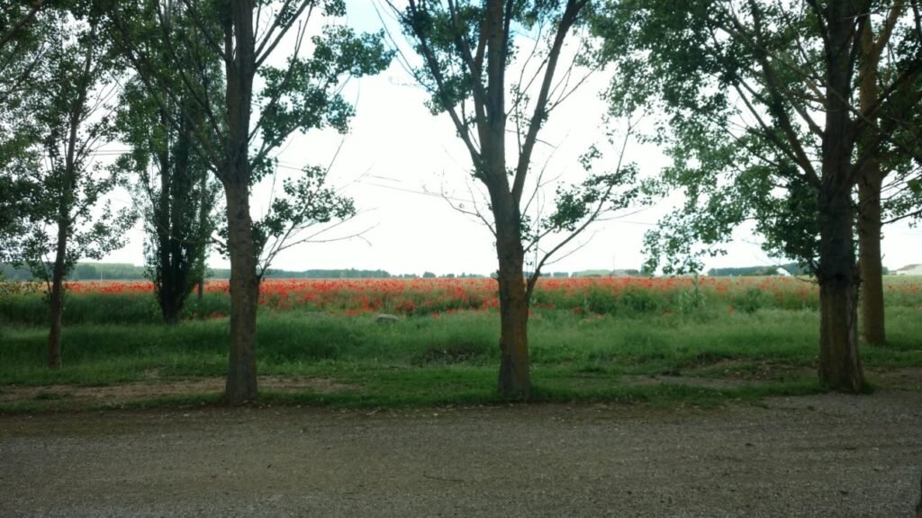What a beautiful stretch after leaving Sahagun. It was along the road but lined with trees and a nice trail. We had 4 km and then we would be at the Roman Road. It was now 11:30 am.