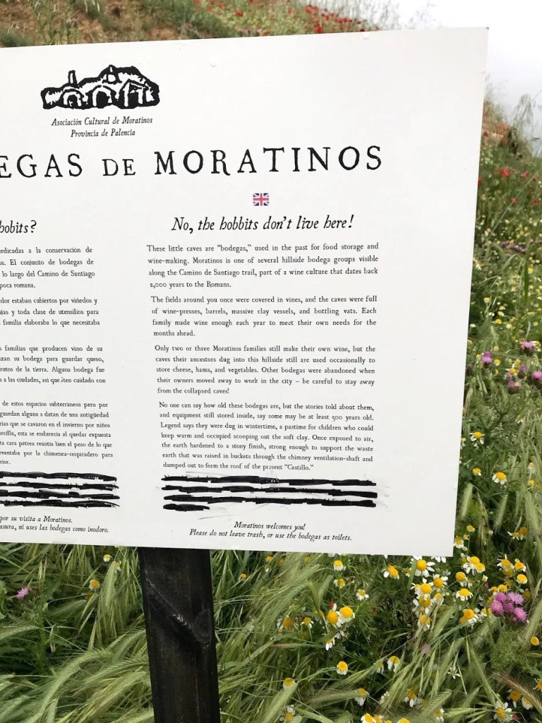 After a few kilometers, we came to Moratinos. This little village was unusual because it had lots of underground ‘dwellings’ – we called it our Hobbit village. But I guess everyone did, because the sign read, “No! The Hobbits don’t live here!”
