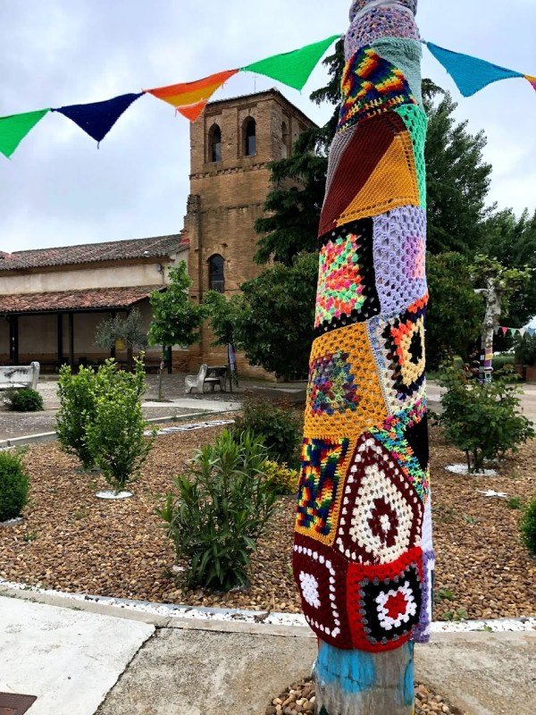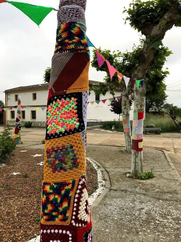 This town was so cute, they had wrapped the trees with quilts.