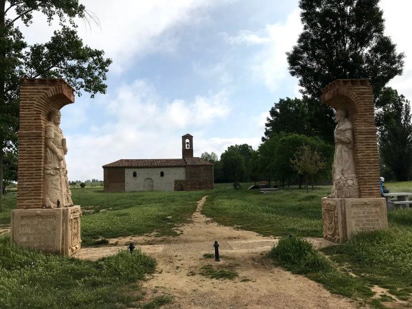 Our Lady of the Bridge. The original pilgrim hospice was no longer standing but it was a nice chapel with beautiful grounds. Picnic tables gave the weary pilgrims a place to rest. Lots of trees and shade.