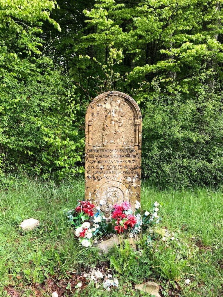 On this walk, we made it to another important point for me…a stone tablet which read, “Here you can pray a Salve Regina (Hail Holy Queen) to Our Lady of Roncesvalles”. And so, I prayed…