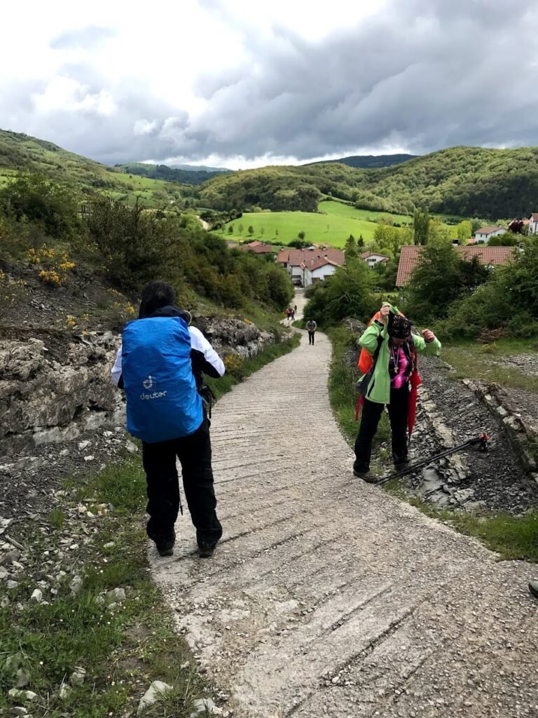 We continued down a treacherous hill. This was the descent into our resting place in Zubiri. It is one of the most dangerous on the French Way. It was even more difficult today due to it being wet and very slippery.