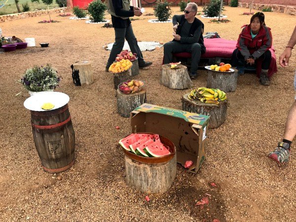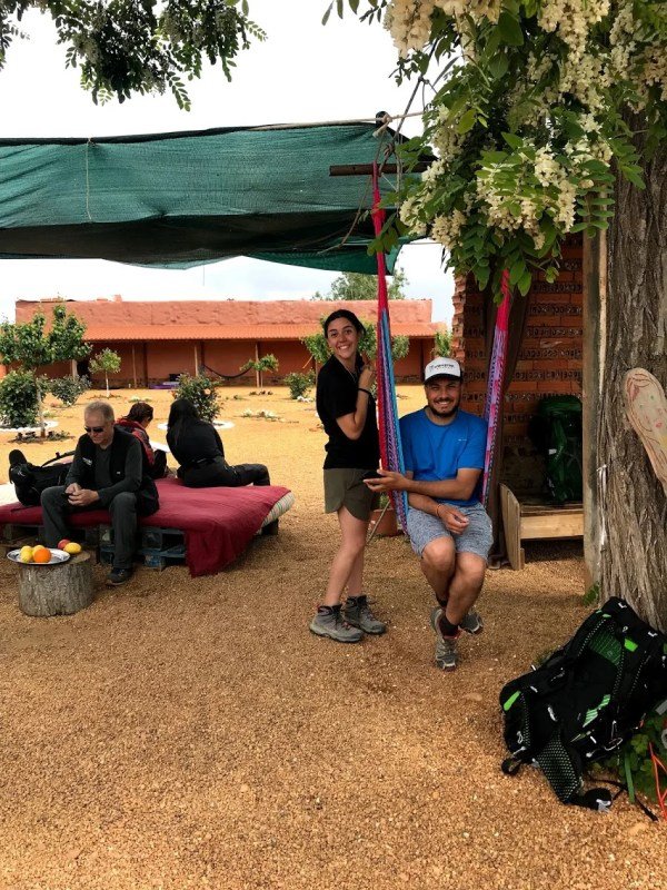 We were all feeling really good today. I think after the huge accomplishment of yesterday and today’s short walk, we all had a little skip in our step. Our next stop would be this amazing oasis. I have had the blessing to stop at this oasis before and I was looking forward to it again. But until then, we had to walk through farmland. Dirt paths right through the farm. So, watch your step!