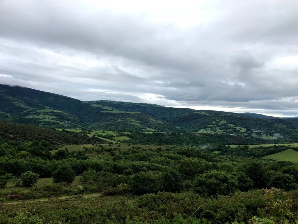 It was cloudy and cool. Perfect walking weather. As we topped Alto Riocabo we had amazing views and now it was the decline into Sarria. Of course, a decline with lots of ups and downs.