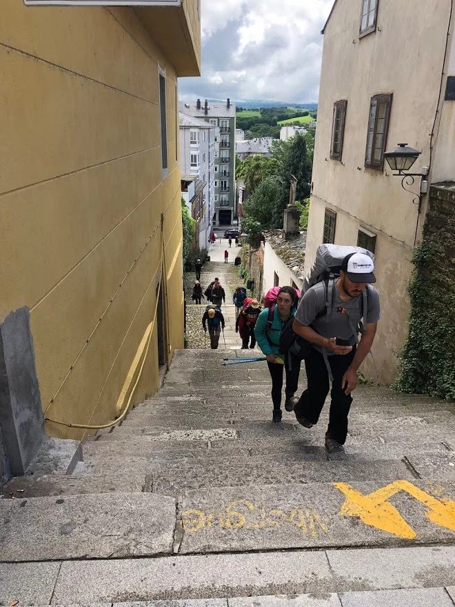 We made our way into Sarria and it was only 12:30. Nice! Sarria is one of the towns along the Camino which have a nice set of stairs you have to walk up to enter the town. Not what you are wanting at the end of your day. Your legs are tired and you are just ready to get to the Albergue. It is in these moments you start humming the song from the movie “Rocky” It actually helps.