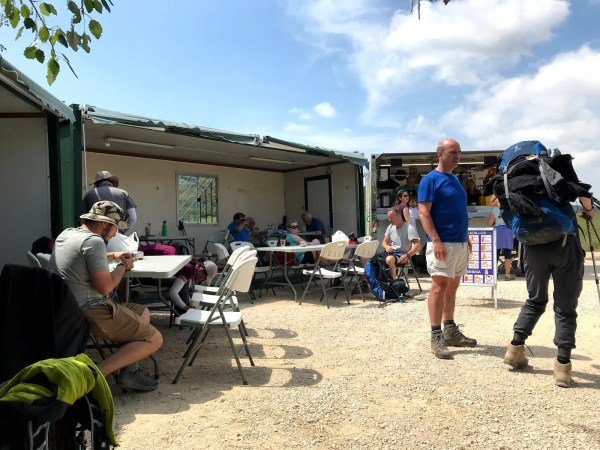 The Camino is amazing. Just when you need that break you round a corner and there is a little café! Today, we came to one in the middle of wheat fields. Basically, in the middle of nowhere. They had made a café out of trailers! It was a perfect stop for us… and a much-needed break.