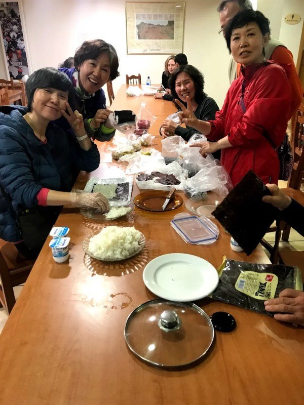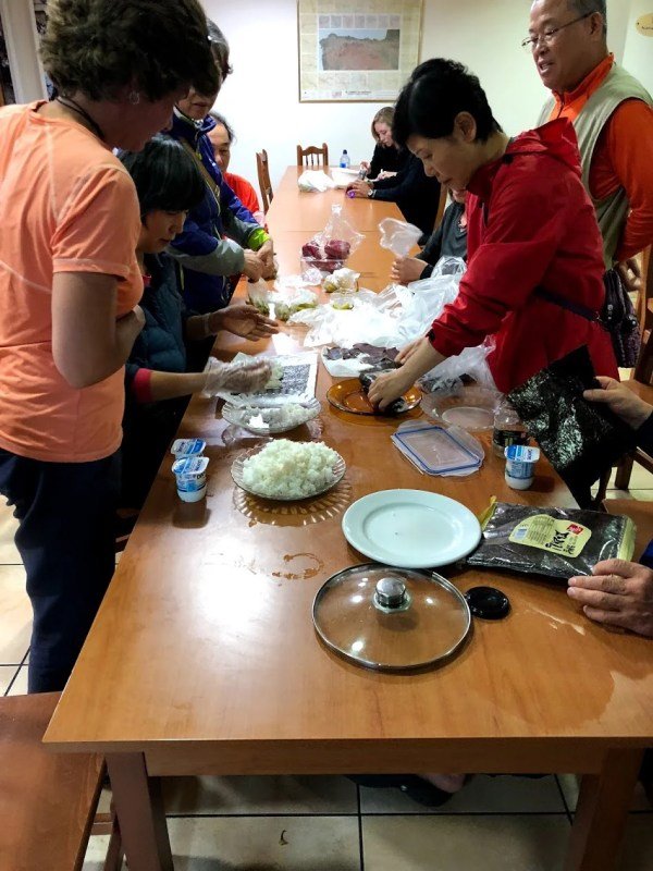 We really enjoyed this hostel. Of course, we saw all of our Camino friends and the hostel had a huge dining room so everyone just hung out and talked. We played card games, of course, and really enjoyed ourselves. There was a group from Japan and they were making Sashimi. I learned this quickly as I approached them and said “oh, you are making sushi!” They all looked up and so “No! Sashimi!”