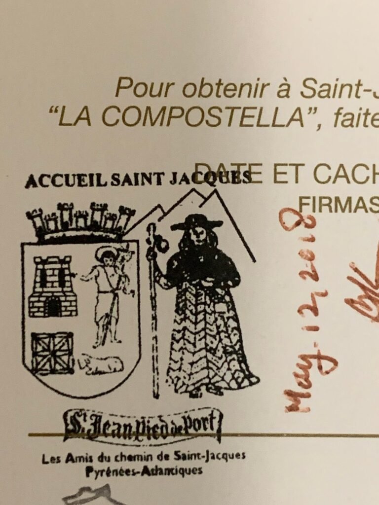 Because the office was closing soon, we decided we had better register first and then get our supplies. We walked up the cobblestone street to find the pilgrims office. There were only a few pilgrims ahead of us as we anxiously awaited our turn. Approaching the desk, we were excited and nervous at the same time. The nice lady asked us our names and where we were from, and then she proceeded to pull out some paperwork. She asked if we had ever walked over the Pyrenees. When we said no, she pulled out a map.