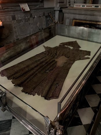 This sacred mountain will be the starting point for our Camino. A very prayerful and holy place. As Cale and I wandered the halls and explored all the nooks and crannies, we were amazed by everything we stumbled upon. We walked through caves where St. Francis prayed, visited the cave where he slept and prayed in the cave (now chapel) where he received the Stigmata. One of the highlights was seeing the habit worn by St. Francis when he received the Stigmata. Lets just say, Cale and I stood there in awe and felt the Holy Spirit all around us!